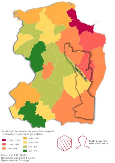 Is dit alleen een probleem van de Veenkoloniën of een probleem dat in veel andere gebieden in Nederland ook voorkomt? Zoals achterstandswijken in de grote steden, gebieden zoals Zuid-Limburg en Noordoost-Friesland en Noordoost-Groningen. Ook dat zijn regio’s waar gemiddeld meer mensen met een lagere opleiding wonen. Uit diezelfde onderzoeken van RIVM en CBS blijkt namelijk ook telkens dat een slechtere gezondheid samenhangt met een lagere opleiding. Hoger opgeleiden leven vaak wat gezonder, eten beter, sporten meer, roken en drinken minder. Lager opgeleiden hebben vaker last van armoede, stress door een slechte woning, hun werkomstandigheden zijn vaak zwaarder, of ze hebben er juist last van dat ze helemaal geen werk kunnen vinden. Wie werkloos is, raakt vaker psychisch in de knoop, grijpt eerder naar de fles.
