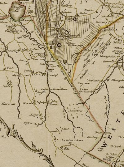 In die tijd werd er gesteggeld over grenzen van gebiedsdelen van de nog piepjonge Staat der Nederlanden. Zo ook over die tussen Groningen en Drenthe. Daar had zich voordien eigenlijk niemand om bekommerd, maar de winning van het veen bracht daarin verandering. In 1612 zorgden twee cartografen uit Leiden, Johan Sems namens Groningen en Johan La Haye namens Drenthe, ervoor dat die noord-zuidgrens werd vastgelegd. Uiteindelijk werd de nieuwe scheiding naar de eerste genoemd: de Semslinie. Wat eraan opvalt is dat zij, als eerste ter wereld, kaarsrecht is. En daarmee een voorloper van de latere kaarsrechte koloniale en postkoloniale grenzen die we kennen van Afrika en van diverse staten van Amerika.