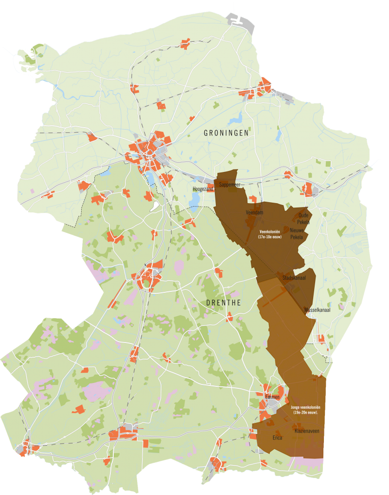 Een kolonie in het veen. Dat was het in zijn oorsprong letterlijk. Zo’n zeshonderd jaar geleden bestond Noord-Nederland voornamelijk uit moerassige gebieden waar hier en daar een zandrug doorheen liep. Zoals het Bourtanger Moor, een uitgestrekt drasland. In moerassen ontstaat veen en van veen kun je turf maken om mee te stoken. Turf was een belangrijke brandstof en daarmee een waardevol product. Het aardgas van vroeger.